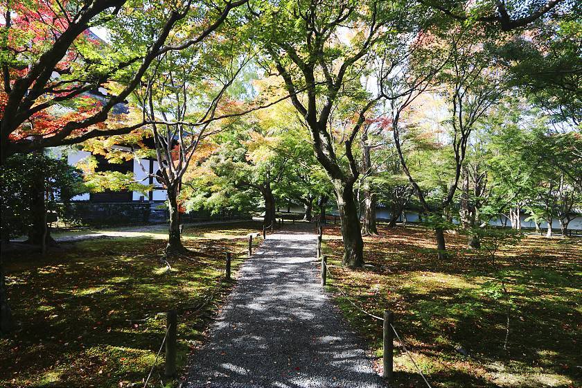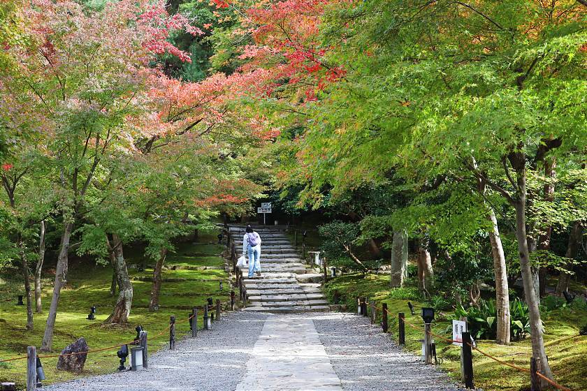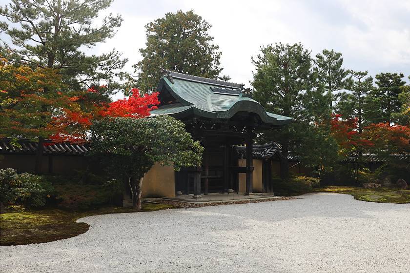 Here I saw just a few isolated splashes of color, with most of the foliage within the garden and on the hillside still looking entirely green. As an additional note, the temple's kyakuden or guest hall is currently closed for renovation and is set to reopen in March of 2026, although this has only a minor impact when visiting.