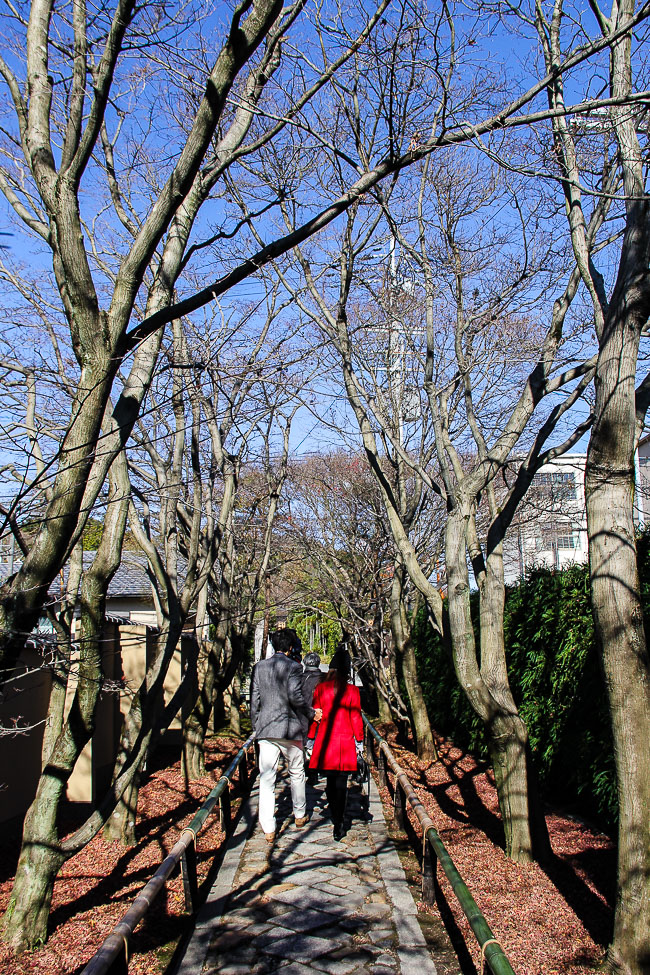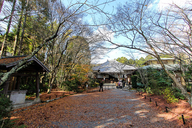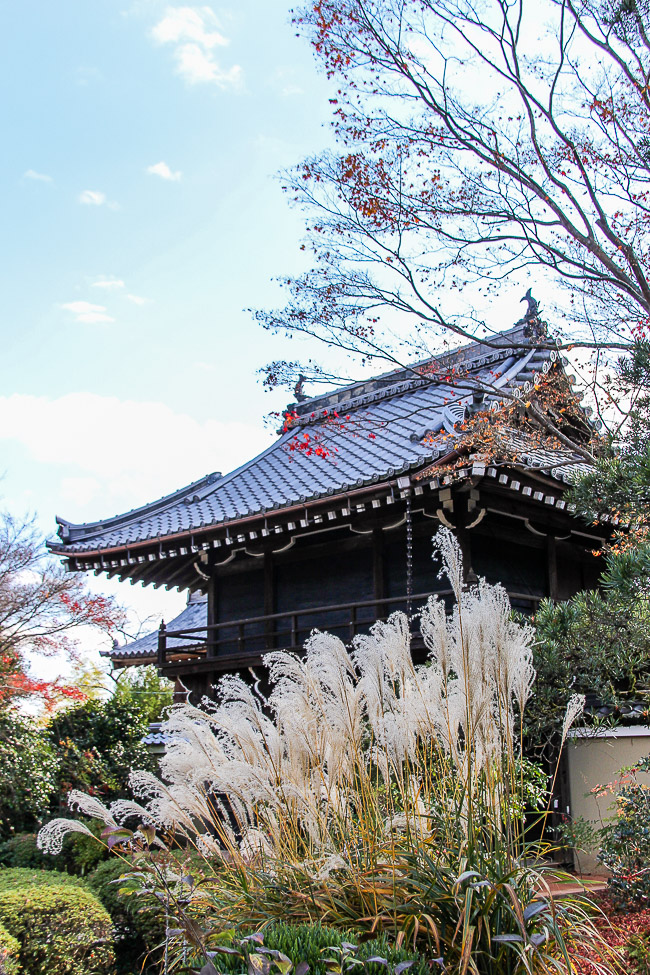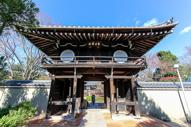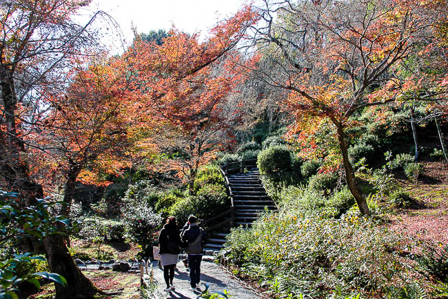 Koetsuji Temple is a three-minute walk from the bus stop. The land that Koetsuji Temple is built on was originally gifted to the artist Honami Koetsu by Tokugawa Iseyasu. The artist made his residence on the land and after his death, the residence was converted into a temple of the Nichiren sect of Buddhism. There is a small shrine and about seven rest houses that make up Koetsuji Temple. Maple trees line the pathway into the temple, but today, there were no more leaves, just empty branches lining the path. Inside, the pathway leads to all the rest houses and visitors can sit on benches and appreciate the greenery that surrounds all the houses. Entry into Koetsuji Temple costs 300 yen.