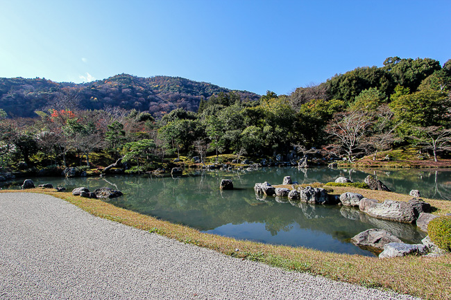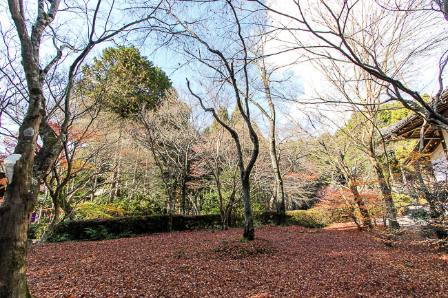 After about two months of reporting almost all over the country, we are reaching the tail end of the autumn season. The leaves and temperatures are starting to fall and the winds getting chillier with each passing day. For those who are in the Kanto Region now, Scott was in Kamakura yesterday and reported that it would be a while more before the autumn colors there reach their peak. Today, I headed back to Kyoto for our last Koyo report in the Kansai Region. This time, I visited Arashiyama and three other temples in the Northern Kyoto, close to Kinkakuji. The autumn colors at all the places I visited today were towards the end of the season with most of the leaves on the ground and only a handful of trees still holding on strong.