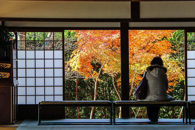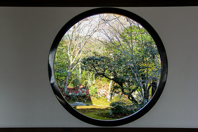From Koetsuji, I walked towards Genkoan Temple which is about two minutes from the Takagamine Genkoanmine bus stop. Genkoan is a zen temple that is famous for its two windows, one round and one square, in the main hall that look out to the garden. The round window, Satori no Mado, represents calmness and peace of mind, while the square window, Mayoi no Mado, represents the trials and tribulations of life. Perhaps zen monks sat here back in the to meditate and reflect upon the chasm of life and being. There is an entrance fee of 400 yen (500 yen in November) to tour the temple and see the windows. Unfortunately, the view today was not as good as it could be as the autumn leaves have dropped and the view was a little green.
