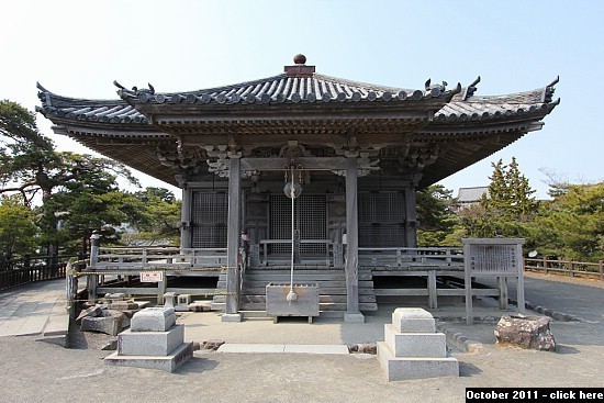 The stone lanterns in front of the Godaido Hall, which were destroyed by the earthquake, were finally rebuilt Compare: April 2012 - October 2011