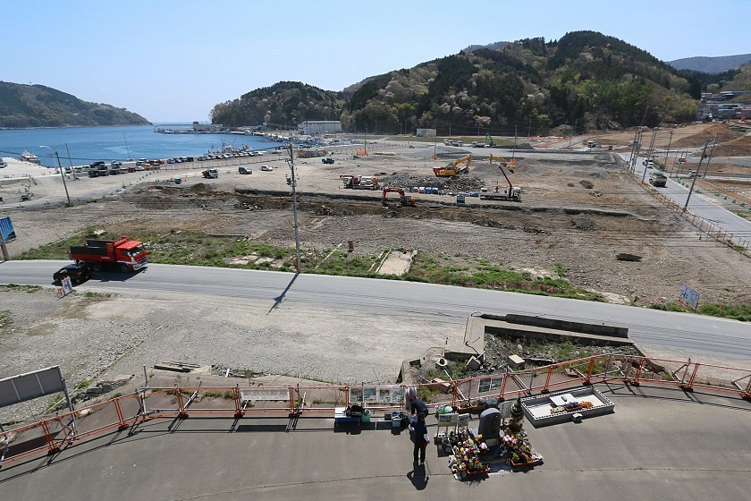 In Kesennuma, the badly damaged Shishiori district is gradually coming back to life. Elevated by a few meters, the district is seeing the completion of a growing number of new buildings, including massive apartment blocks that also serve as tsunami evacuation buildings.