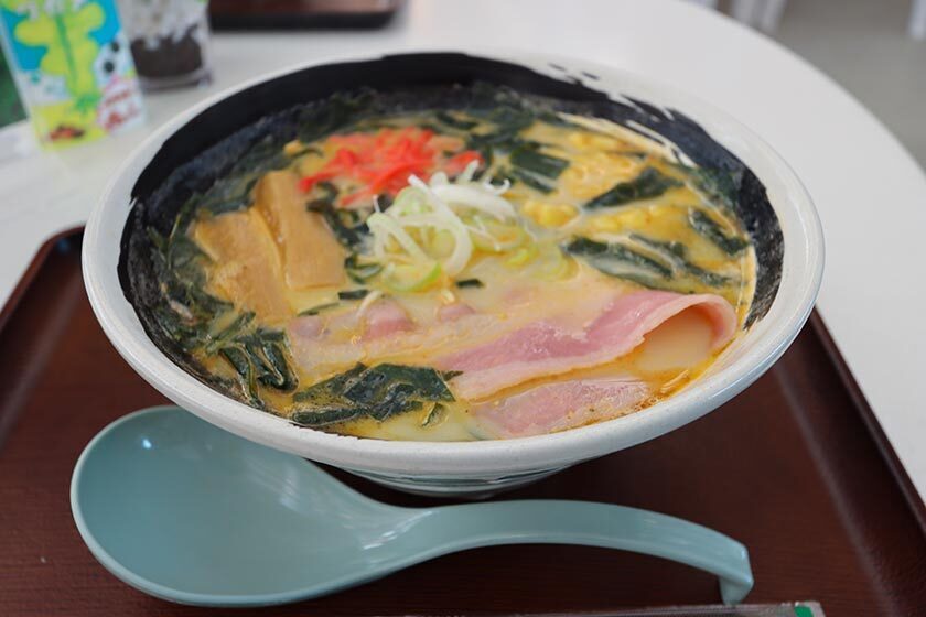 I enjoyed milk ramen with seaweed at the roadside station's restaurant