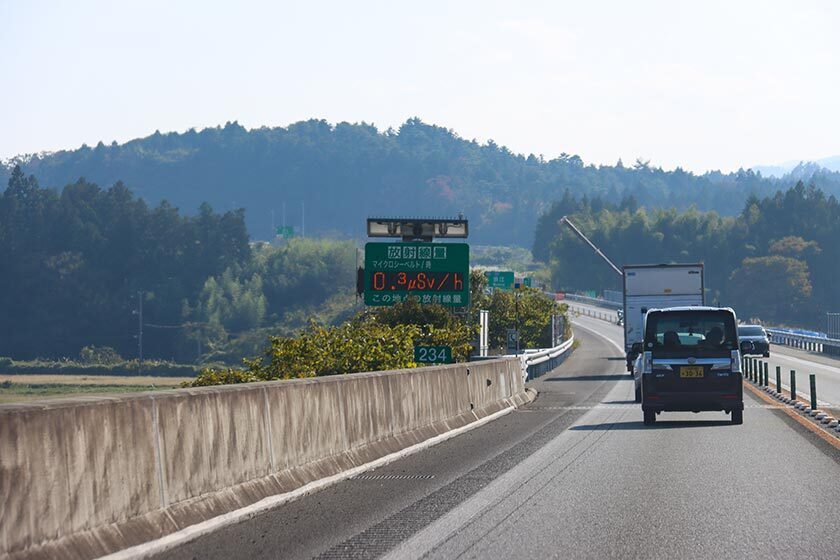 Radiation levels measured along the expressway about 10 kilometers from the former nuclear plant were very low