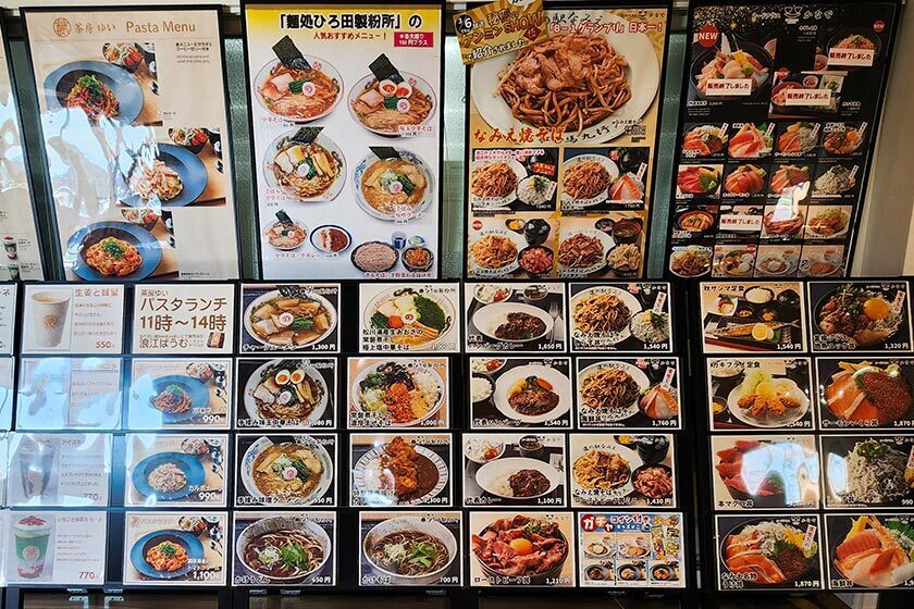 Dishes on offer at the roadside station