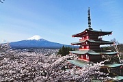 Fujigoko Report Today we went to check out the Fuji Five Lakes area which is a popular spot to take pictures of cherry blossoms with Mount Fuji as a backdrop. Two of the best places to view the combination of flowers and mountain are at Chureito Pagoda...