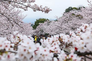 I made my way along the park to my next stop, Osaka Castle. This year, in addition to the illumination event at Nishinomaru Park which will continue until April 16 from 18:00 to 21:00, there is a 20 minute boat cruise along the inner moat providing a water-level view of the blossoms. Cruises are available everyday from 10:00 to 16:30. The cherry trees in the castle grounds were all at full bloom and should remain at their best till at least the middle of next week.