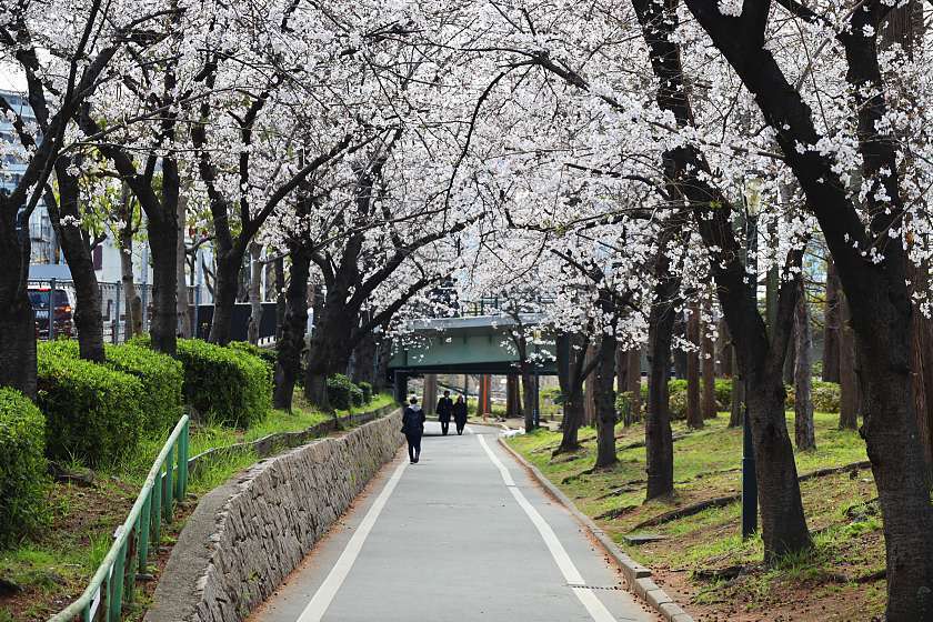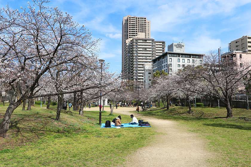 Just one day on from yesterday's visit to Kyoto where the blossoms had only just opened, I spent today in Osaka to see how things were progressing at three of the city's best known viewing sites.