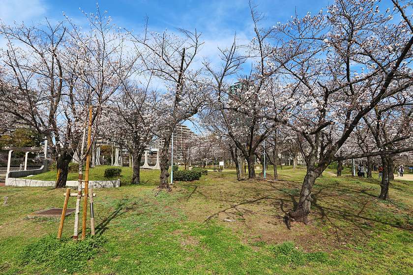 I started the day in Kema Sakuranomiya Park, a long, grassy strip dotted with cherry blossom trees skirting a riverside just to the west of the city center. Already quite nice to look at in places, overall the area still felt quite sparse with the proportion of open flowers at just a touch under 10%.