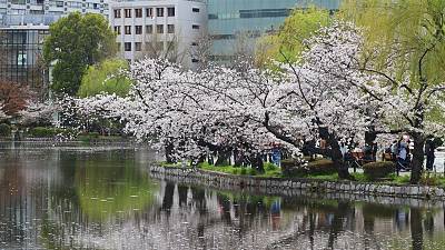 I visited three popular cherry blossom spots in Fukui, and observed that the cherry blossoms were at their best viewing. I expect the flowers to remain at their best for at least the next few days. Tomorrow (Wednesday April 9) will be the best day this week for cherry blossom viewing (hanami) as the weather is forecast to be sunny with warm temperatures. Rain is forecast for the later half of the week, which is likely to put a damper on hanami parties and possibly have a negative impact on the longevity of the blossoms.