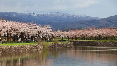 Following on from Raina's report on Wednesday from Kakunodate, I spent today at Hirosaki Castle Park in Aomori Prefecture - a pleasant open space with over 2500 cherry blossom trees spread across lawns and gardens, along wide strolling paths and amongst what remains of the old castle.