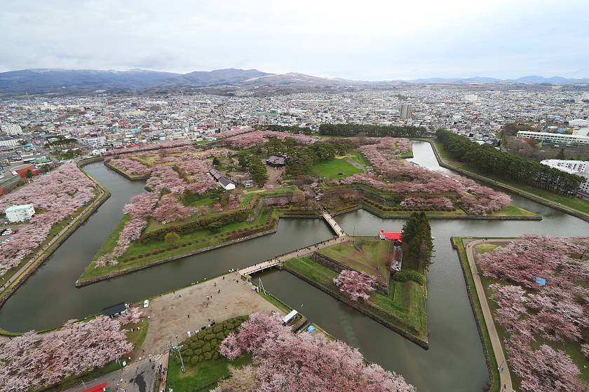 A day on from yesterday's report from Hirosaki Castle Park, today I followed the cherry blossom frontline up into Japan's northernmost island of Hokkaido. My destination today was Fort Goryokaku, a unique star-shaped citadel and Japan's first western-style fort, built in the closing years of the Edo Period (1603-1868) as a bulwark against foreign imperialism. Today, it's an impressive public park with over 1,500 cherry blossom trees planted throughout its grounds.