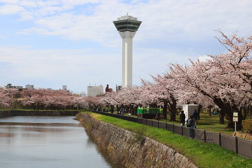Before making my way into the park itself, my first stop was at the Goryokaku Tower - a 107 meter structure offering a commanding view across the whole of the park from its top floor observation deck. To mark the cherry blossom season, the tower will open an hour earlier than usual from 8:00 to 19:00 until May 6.