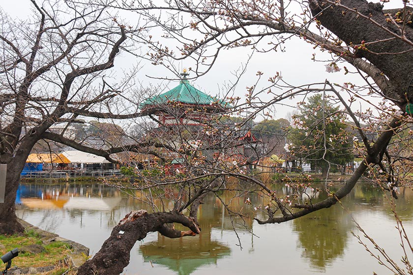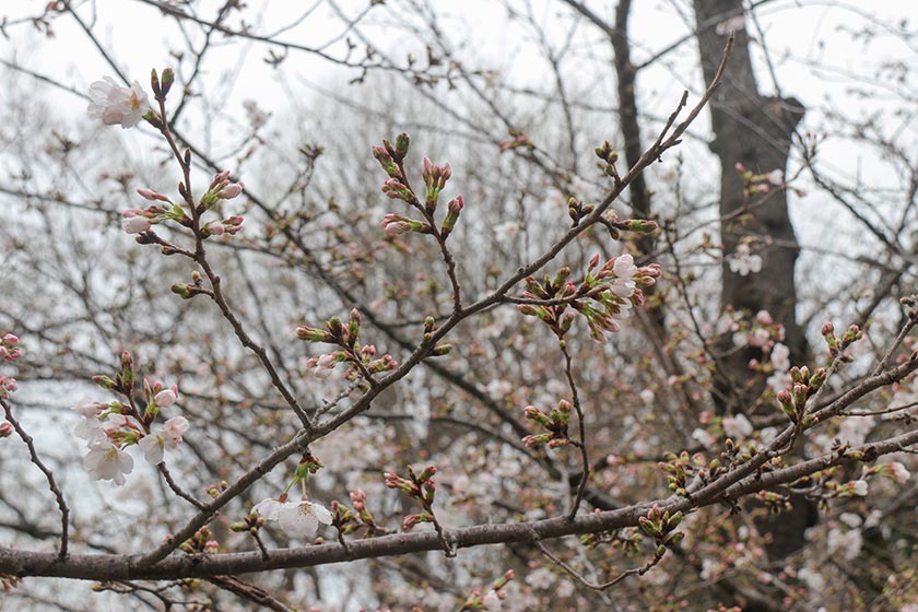 I started my wet Monday at Ueno Park, a popular cherry blossom viewing spot in central Tokyo. While there were more open blossoms today compared to when Cassie was here four days ago, many of the trees still need a few more days to reach their best viewing. Consequently, the best viewing at Ueno Park is expected to start from around March 26 until April 3, barring inclement weather.