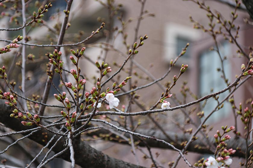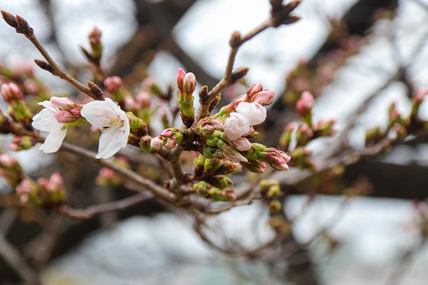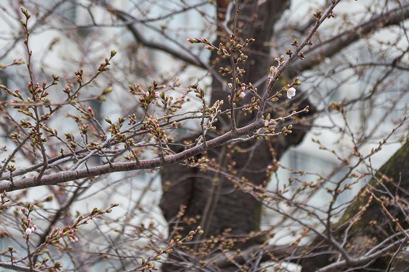 After weeks of reporting on early blooming cherry blossoms, it is finally the season for the the mainstream cherry blossoms. Cassie was in Tokyo last Thursday and reported that the cherry blossoms had just opened. Today, I revisited Tokyo to follow up on the sakura and found that the number of open blossoms are increasing slowly, but surely. Warmer temperatures are forecast for the rest of this week and that should greatly encourage many more blossoms to open over the next few days. Barring inclement weather, our estimated best viewing in Tokyo is predicted to be from March 26 to April 3. I expect this coming weekend to be a prime time to see the cherry blossoms at their best.