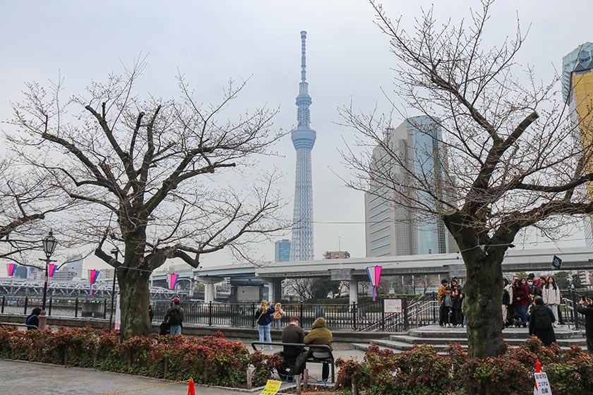 Until April 5, there is a cherry blossom festival along the banks of the Sumida River. There are no festival food stalls, but the cherry trees are illuminated from 18:00 to 21:00.