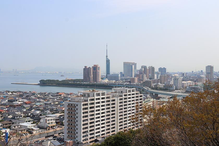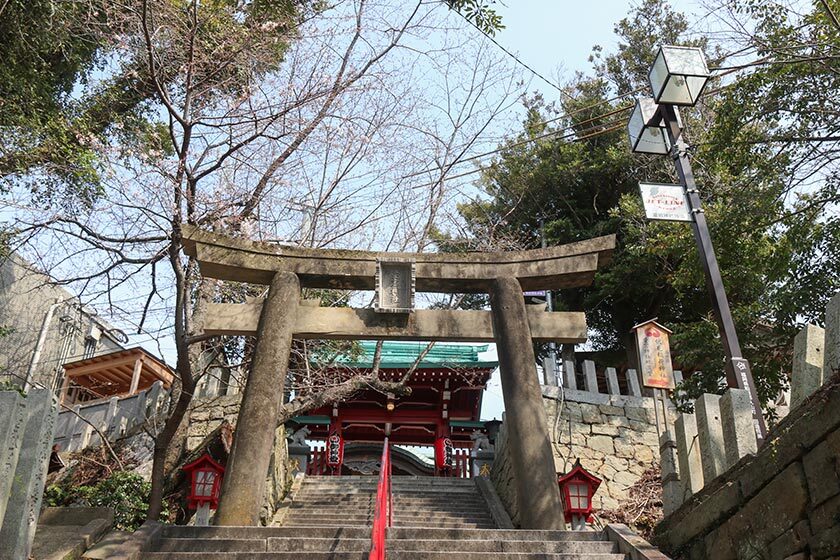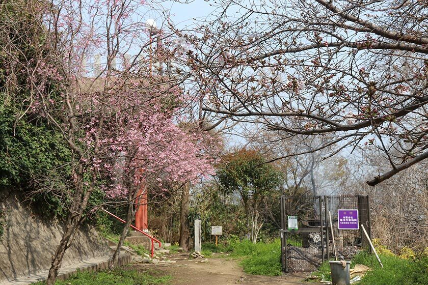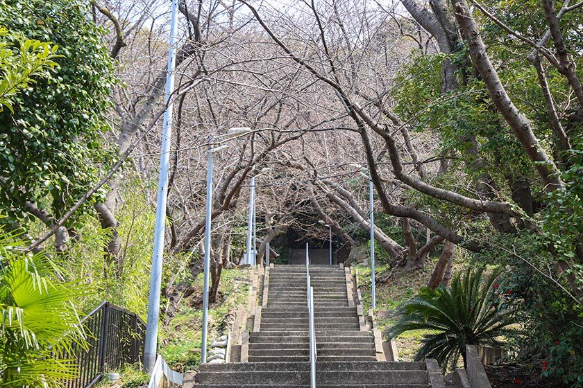 My next and last stop in Fukuoka was Washio-Atago Shrine, which is considered to be one of the top three Atago Shrines in Japan alongside the ones in Tokyo and Kyoto. Not only is the shrine an old and important one, the views from there are also great. The shrine is about 10-15 minutes on foot from either Meinohama or Muromi stations on the Fukuoka Subway Airport Line. It is said that there are approximately 2000 cherry trees on the shrine grounds, but there were very few open blossoms when I was there. Warm temperatures are forecast for the next few days, and consequently, I expect the best viewing here to be in the first week of April.