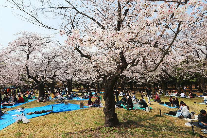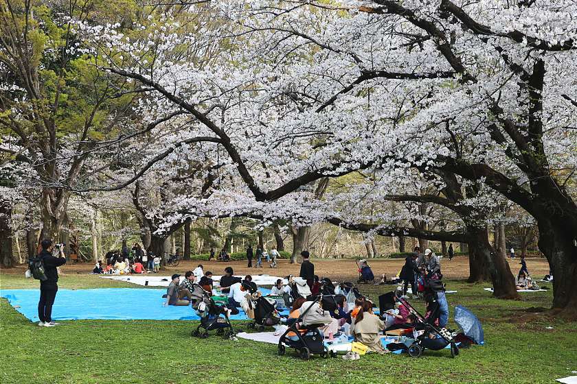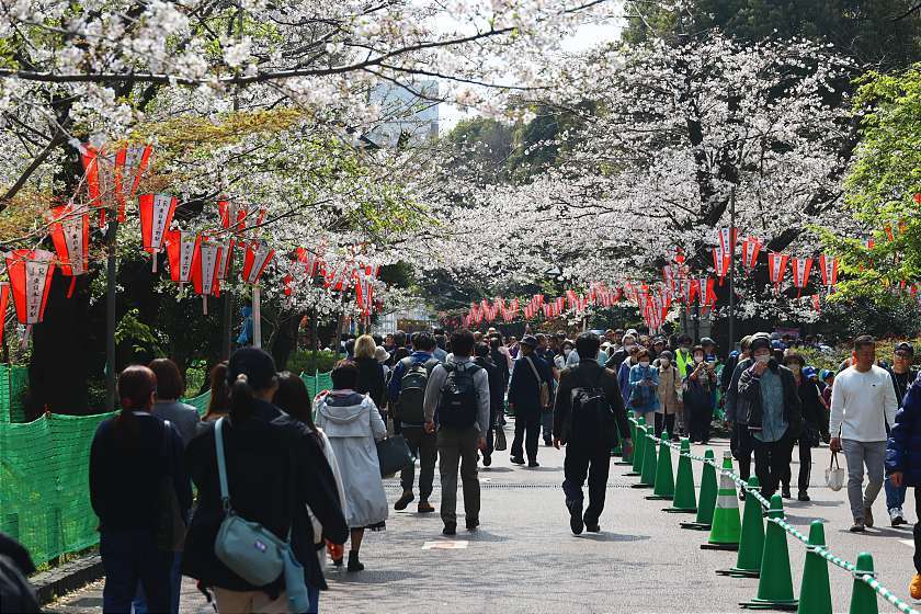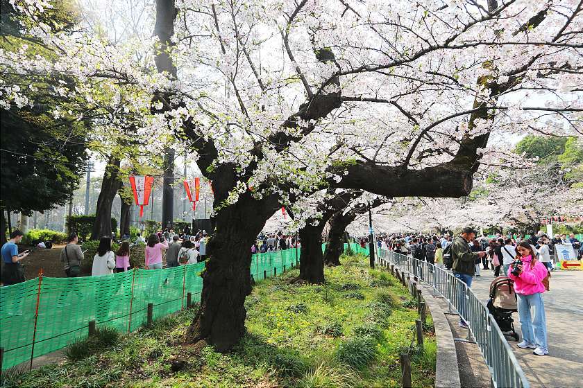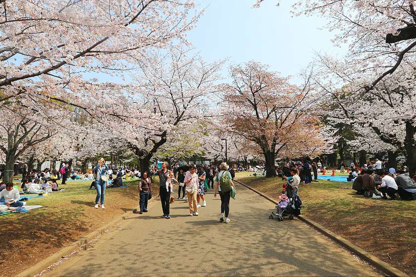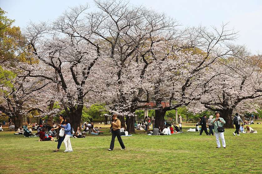 Three days on from my last visit, today I was back in Tokyo to see how the cherry blossoms were coming along at two of the city's best-loved parks. Both are now well into the period of best viewing, with happy crowds gathering to enjoy the scenery while soaking up the intermittent sunshine.