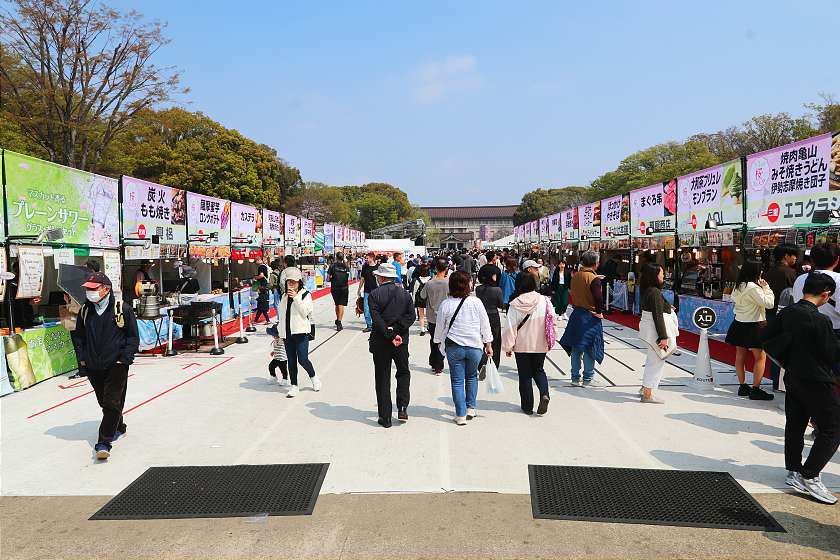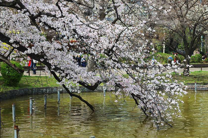 Within the park, an impressive number of food stands can be found at both ends of the main avenue and along the approach to the Bentendo Hall. Lanterns along the main strolling avenue will be lit from March 14 to April 5 between 17:00 and 23:00, while the pond area will be illuminated from March 20 to April 19, 17:00 to 20:00 or 21:00 depending on the day.
