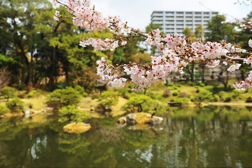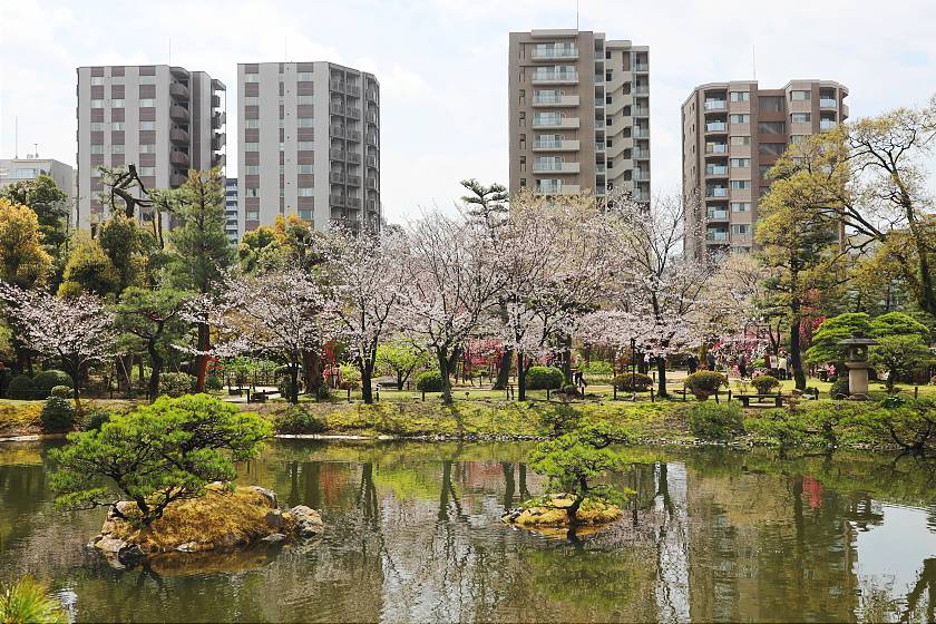My second stop of the day was at Shukkeien, a beautiful landscape garden located alongside the Kyobashi River, about 15 minutes walk east of Hiroshima Station. Here, visitors can find about 200 cherry blossom trees, both around the central pond and in two larger clusters.
