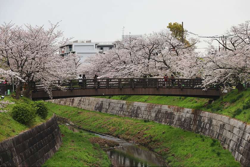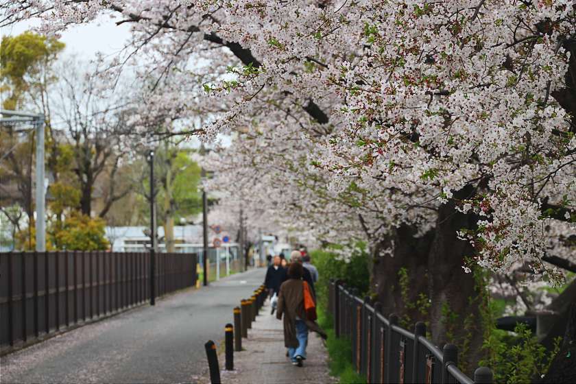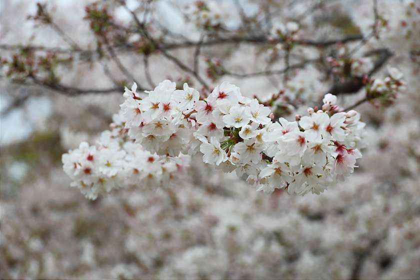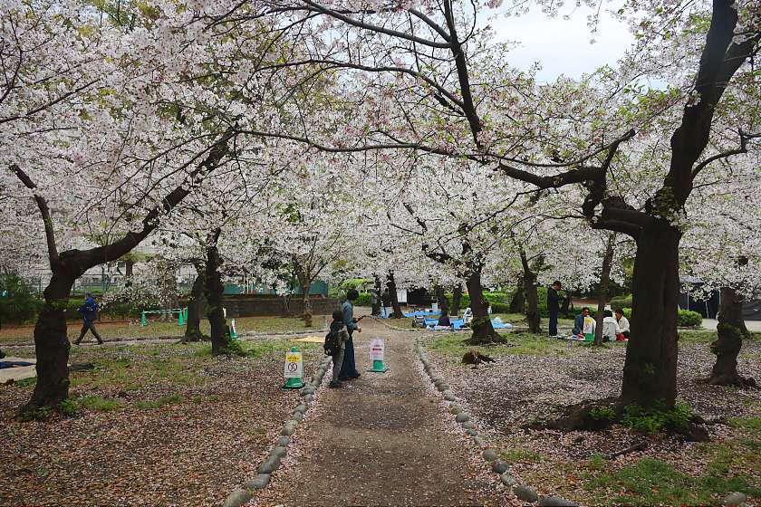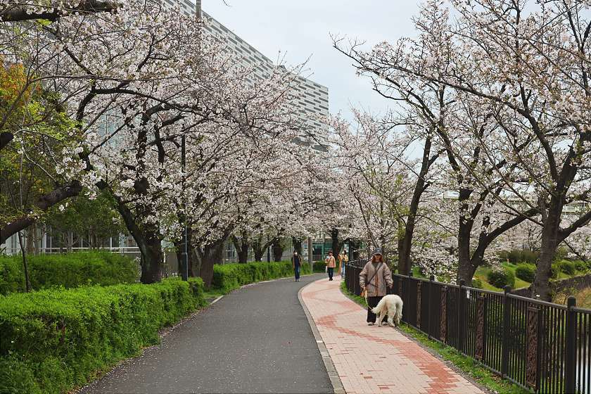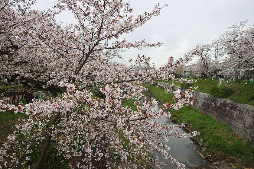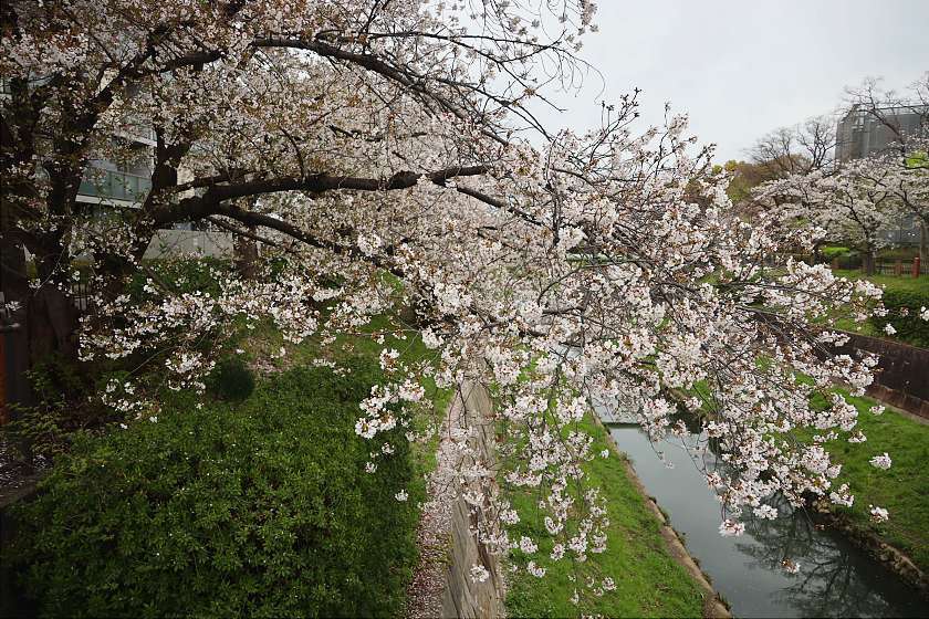 My second stop was at the Yamazakigawa Riverside - a pleasant strolling area stretching for about 2.5 kilometers and lined with around 600 cherry blossom trees, a little over 25 minutes by subway from Nagoya Station. While this area was similarly patchy, overall the blossoms felt a day or two behind those at Tsuruma Park and just within the range of best viewing, with noticeably less petals on the ground. Here, enough blossoms will probably survive for the nice conditions to continue until the weekend.