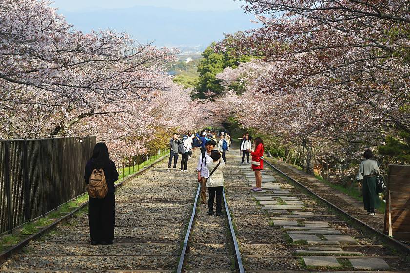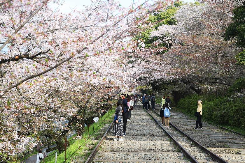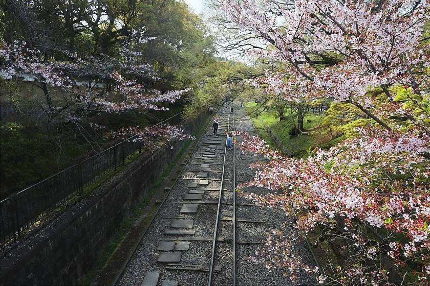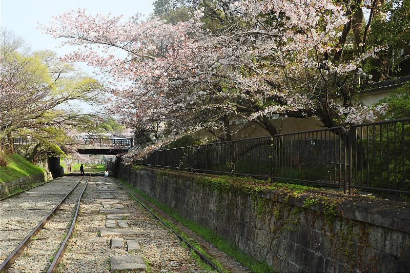 My first stop was at the Keage Incline - a preserved length of sloping railtrack once used to haul boats up- and downhill, today a picturesque spot lined with cherry blossom trees. Here, the blossoms had visibly thinned out, with the lower, northwestern end looking especially past its best although a few nicer patches could still be found on the way up.