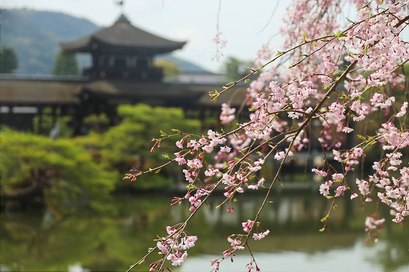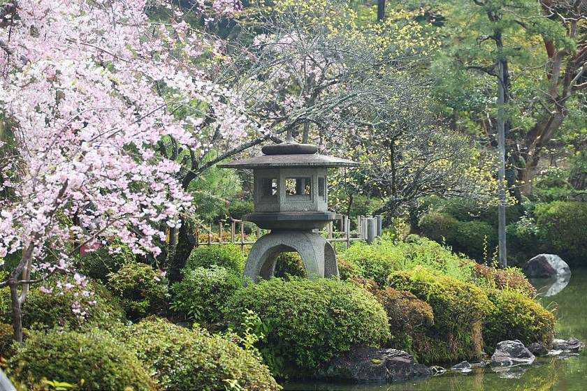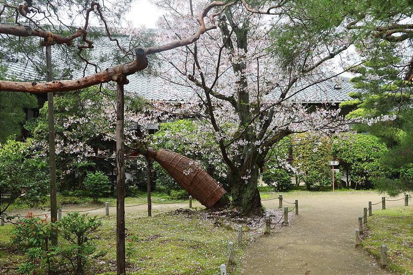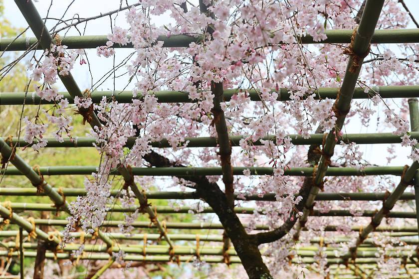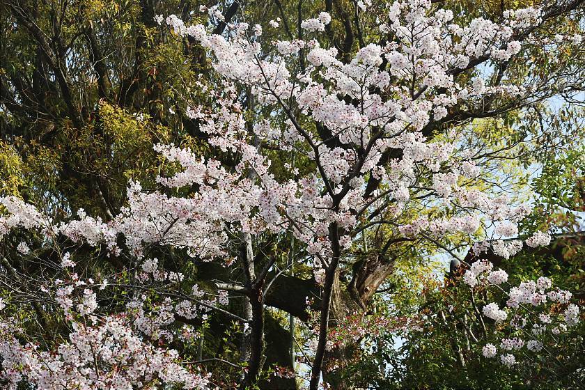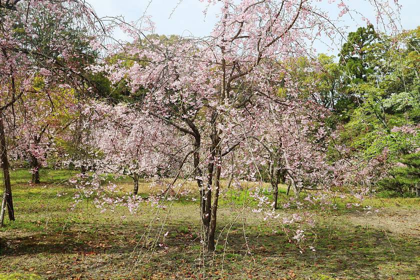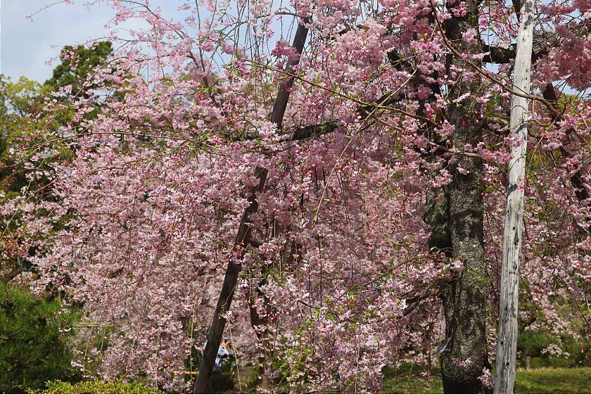 While a few different types of cherry trees are mixed in here, the most noticeable attraction is a double-flowered weeping cherry tree variety that blooms a few days later than the average, making the spot a good destination for those arriving in Kyoto after the peak for the season. These weeping cherries were still just coming into their period of best viewing and should remain attractive a few more days to come.