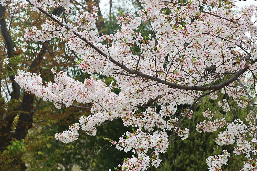 For any visitors still planning a visit in the very near future, I would suggest skipping the main avenues and grassy spaces to the entrance in favor of the "Cherry Tree Stream" area towards the northwest, where some later-blooming types can be found along a little waterway.