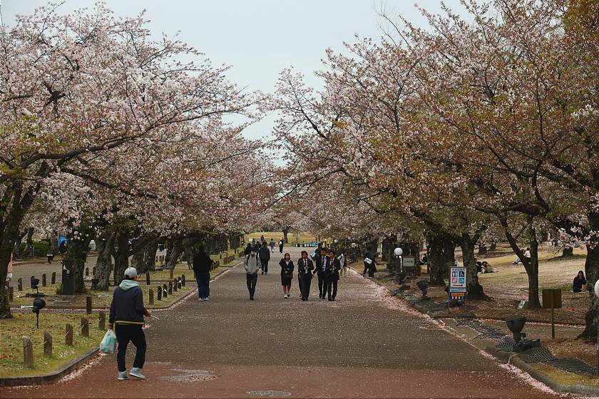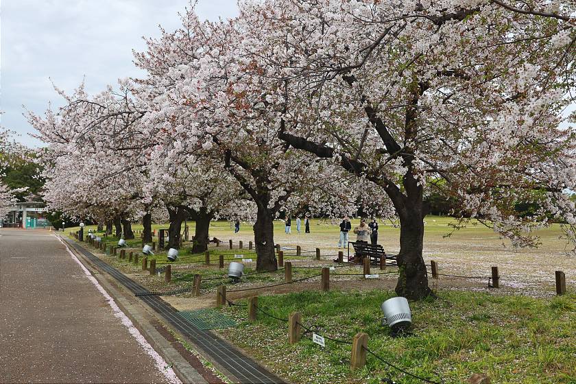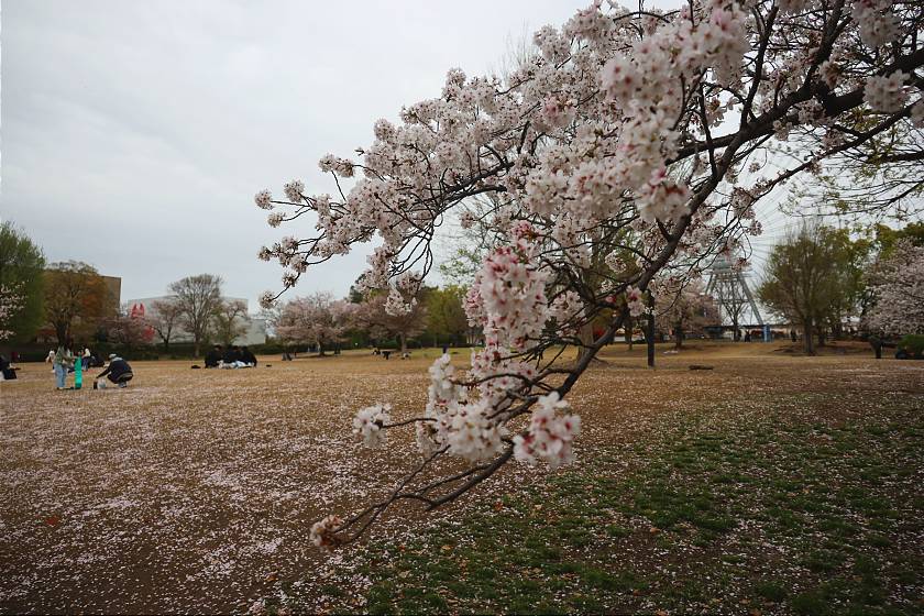 I also made a stop at Expo '70 Commemorative Park, another large public park located about 30 minutes by subway and monorail from the city center. Here the blossoms were a bit more obviously past their best, and a carpet of petals had already formed in the main picnic areas.