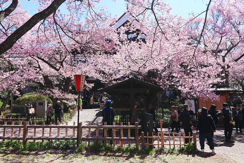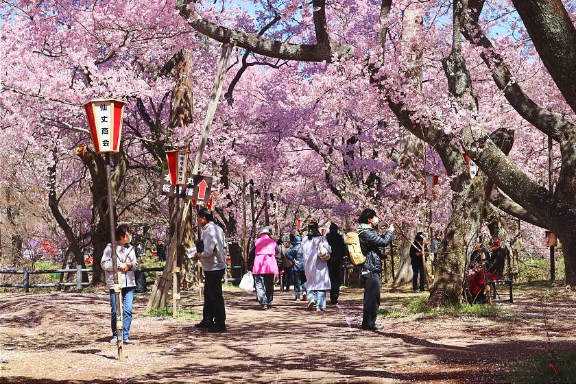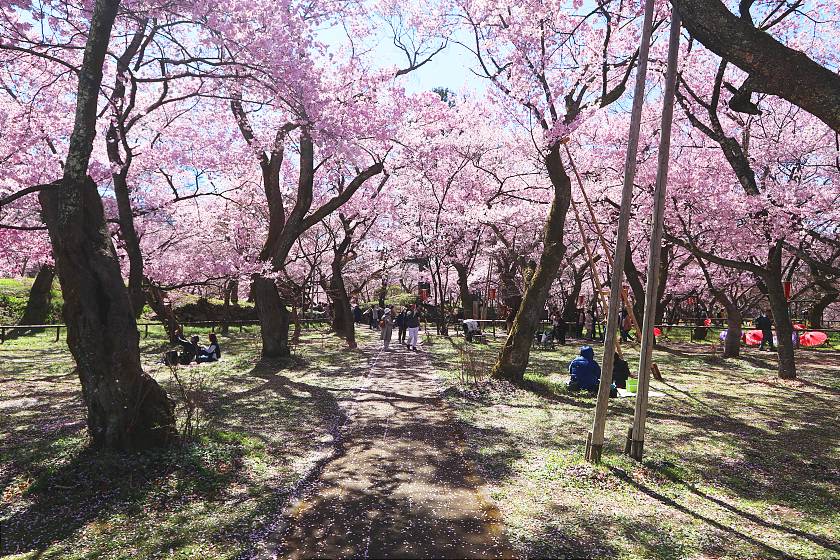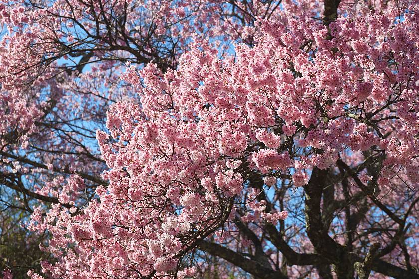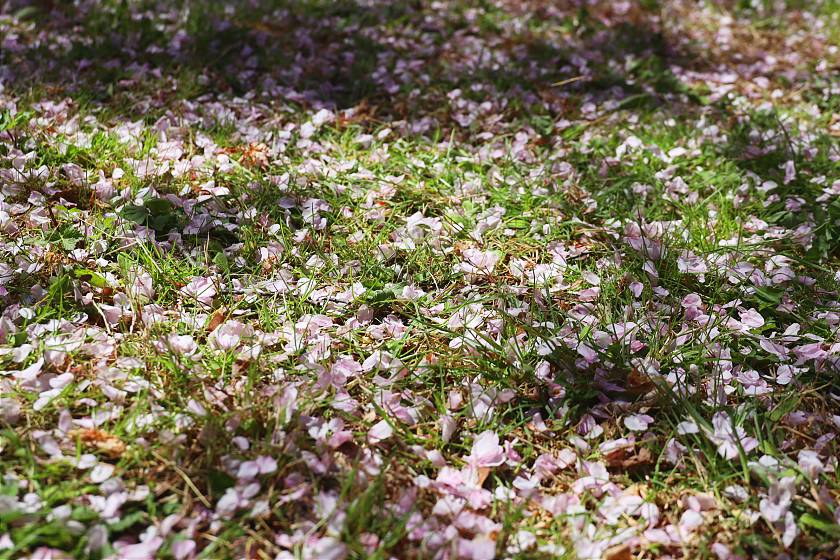 At the time of my visit, the blossoms overall were still looking very thick and attractive, but petals could already be seen falling from trees, suggesting slight but widespread damage in the light rains yesterday. Tomorrow will likely be the last chance to see them close to their best, as heavier rains predicted for tomorrow evening will probably put an early end to the season.