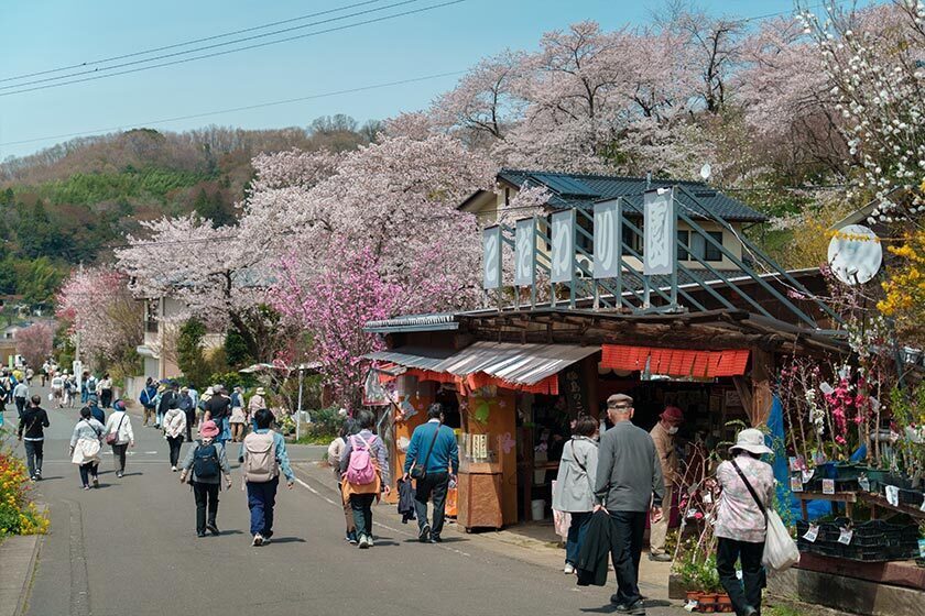 With the Somei Yoshino cherry blossoms beyond peak in major cities west of Tokyo, we at the Japan Guide team are moving to higher elevations and northwards. So today I traveled to Fukushima to visit the beautiful Hanamiyama where the cherry blossoms were at full bloom.