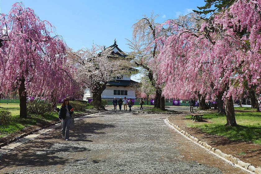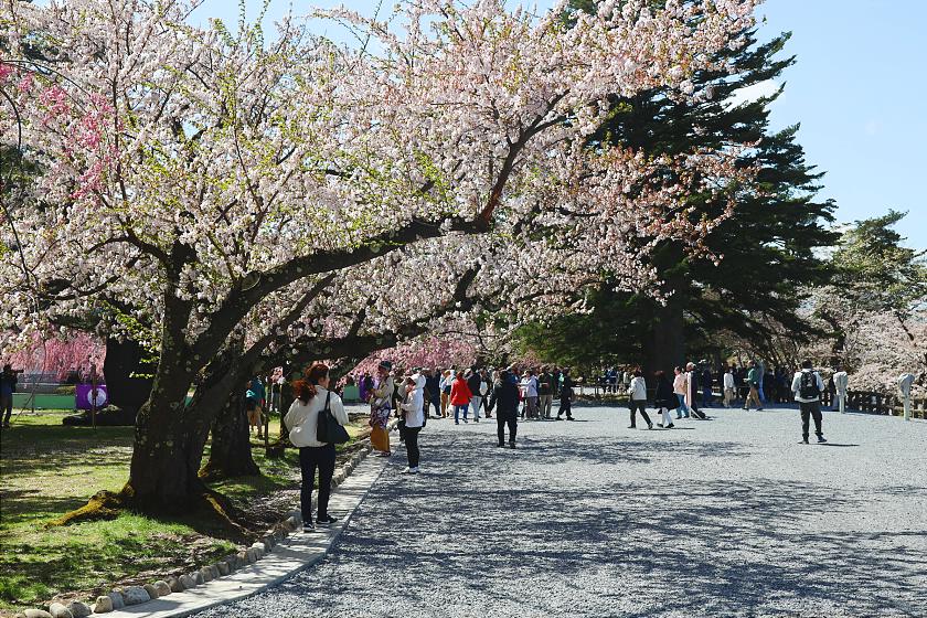 Following yesterday's report from Kakunodate, today I was in Aomori Prefecture to visit Hirosaki Castle - one of the country's best-loved cherry blossom-viewing spots with defensive moats, turrets and a three-story keep all adding to the sense of atmosphere. The castle and its grounds lie within the expansive public space of Hirosaki Park, which altogether boasts around 2,600 cherry blossom trees.