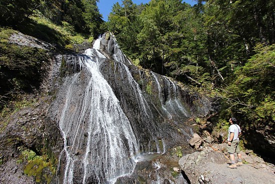 Scott looking at one of the many waterfalls in Norikura Kogen (Norikura Highlands)