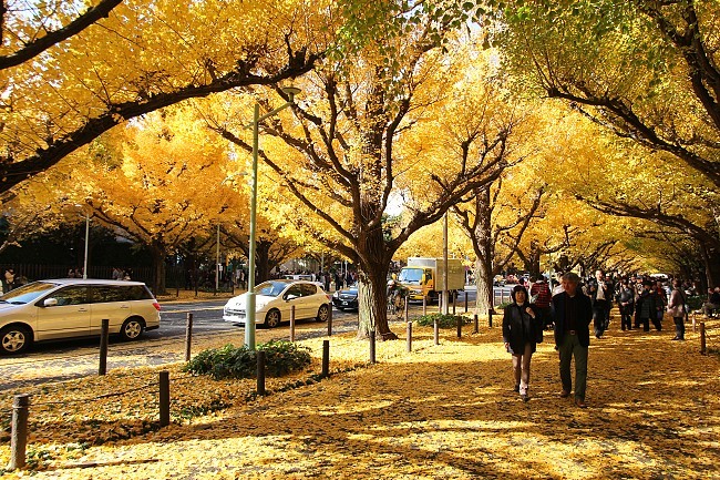 One of my favorite views this past autumn was that at the Icho Namiki (Ginkgo Avenue). The smart-looking rows of yellow ginkgo tree were delightful to watch. Sunlight filtered through the thick crowns of the trees, casting shadows that mingled with the fallen ginkgo leaves, adding a dash of romance to the picturesque avenue.