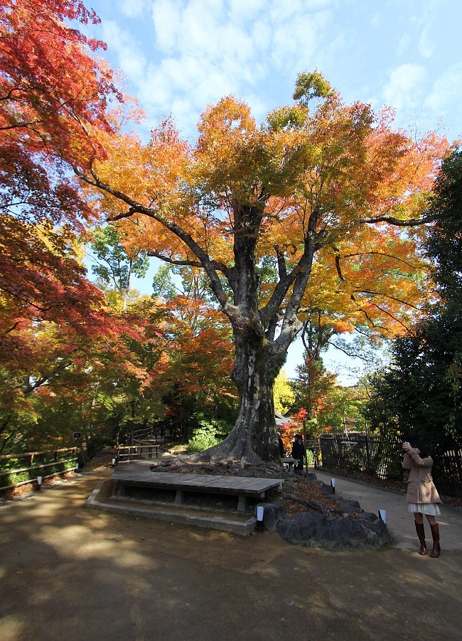 Last month, I made my first visit to Kitano Tenmangu, whose maple tree garden (Momiji-an) is open to public every autumn from around early November to mid December. Views of the maple trees were great even though they weren't yet at their best, but I was particularly touched by the sight of this huge zelkova tree. It drew a small crowd around it, commenting on its beauty.