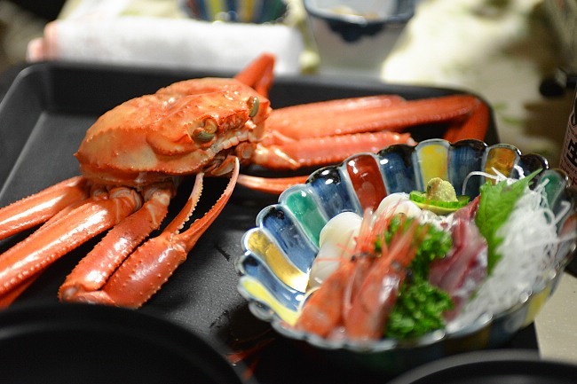 During this year's inaugural We Love Japan Tour, the japan-guide team stayed at Kaniya Ryokan in Itoigawa for one night, and was treated to a sumptuous dinner of chanko nabe (broth with meat and vegetables usually consumed by sumo wrestlers) and crabs. The sweet and juicy crabs were absolutely delicious and it was fun communicating with the young men from the sumo clubs of local schools, to whom the ryokan was dormitory.