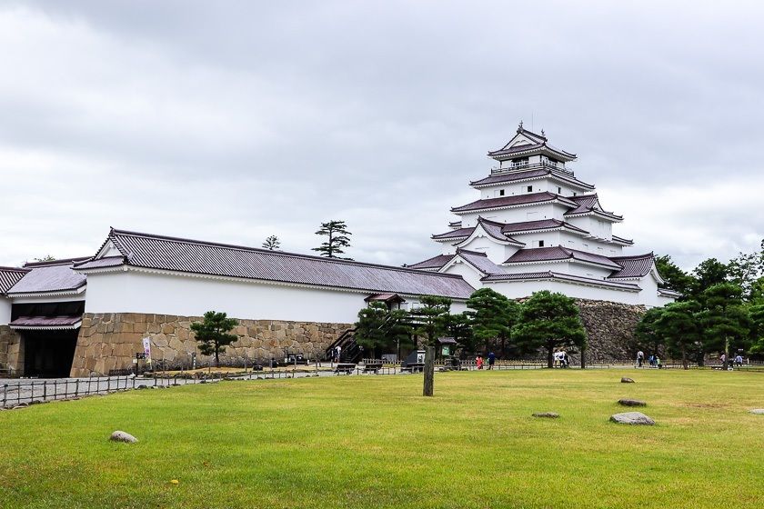 Checking out after breakfast the next day, I spent the first half of the day in Aizu-Wakamatsu. I took the sightseeing loop bus from Higashiyama Onsen to Tsuruga Castle and paid a visit to the Rinkaku Teahouse Garden as well. The museum inside the castle has displays showing the history of the Aizu Region and the lords who ruled from the castle. It made for an educational trip to get an overview of the land and its history.