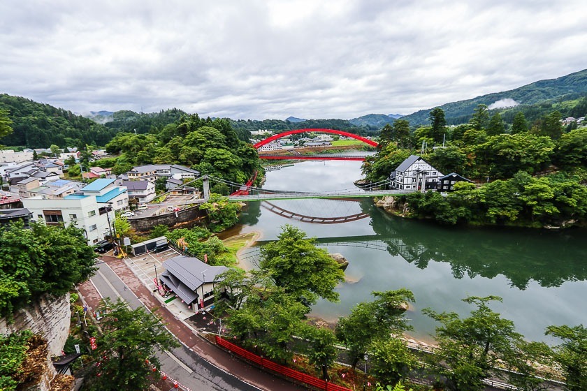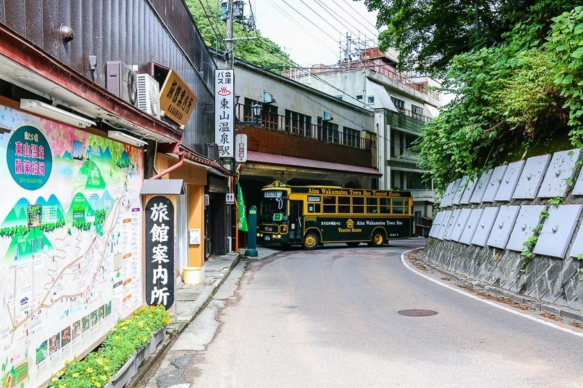 The JR Tadami Line brought me back to Aizu-Wakamatsu where I headed straight to my accommodation at Higashiyama Onsen. The best way to get to Higashiyama Onsen is on the sightseeing loop bus that departs outside of the station and stops at Higashiyama Onsen-iriguchi or Higashiyama Onsen-eki (210 yen per ride). Many of the ryokan can be reached on foot from either stop, and hotel transfers can be arranged from these bus stops when the weather is bad.