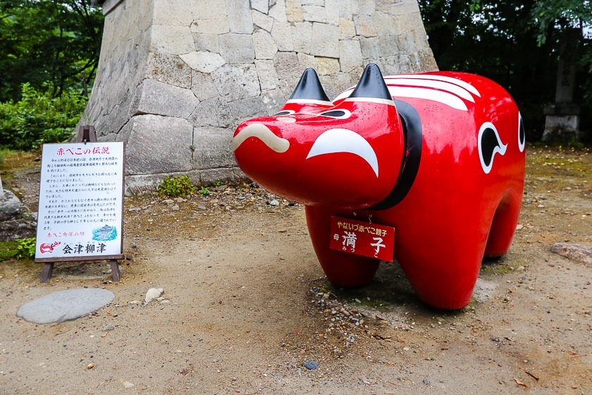 The main sightseeing spots are all within a 20 minute walk from the station, and I found that I had enough time to see almost everything. My first stop in Aizu-Yanaizu was Enzoji Temple, a ten minute walk downhill from the station. Legend has it that the temple was rebuilt with the help of akabeko - red cows - that carried the large and heavy wood that was needed up the hill. As such, Yanaizu is often acknowledged as the birthplace of the akabeko which are widely sold around the region as popular souvenirs, and there are large statues of the cow on the temple grounds.