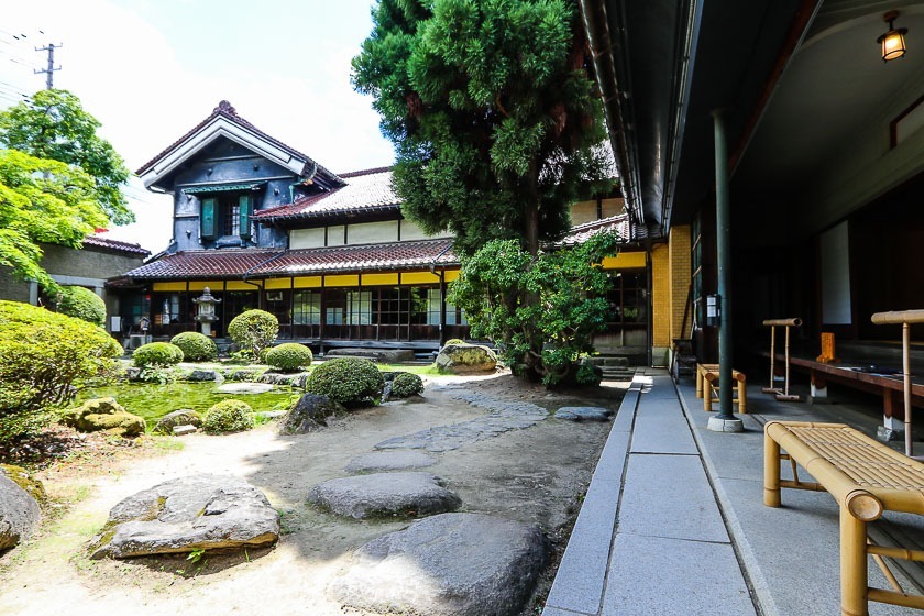 I took the Kitakata sightseeing loop bus (200 yen per ride) from the station to the Kai Residence, one of the biggest and most impressive residences and storehouses in the city, which is also designated national cultural property. Alternatively, the residence could be reached in a 20-minute walk from the station. While admission is free, visitors can only view the exterior of the residence, the inner garden as well as some of the opulent rooms through open doors.
