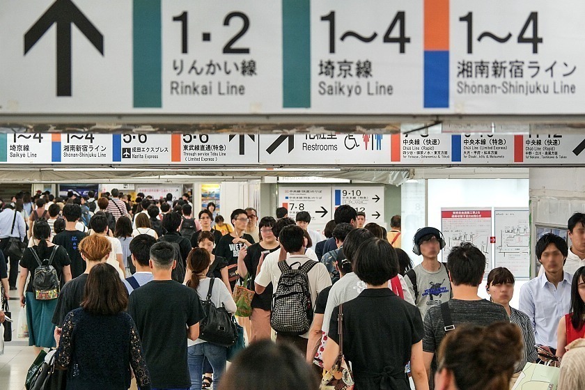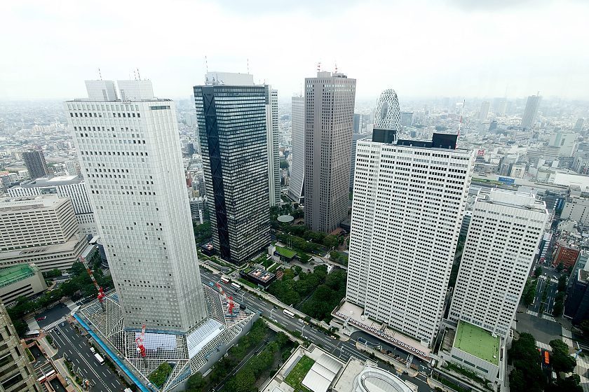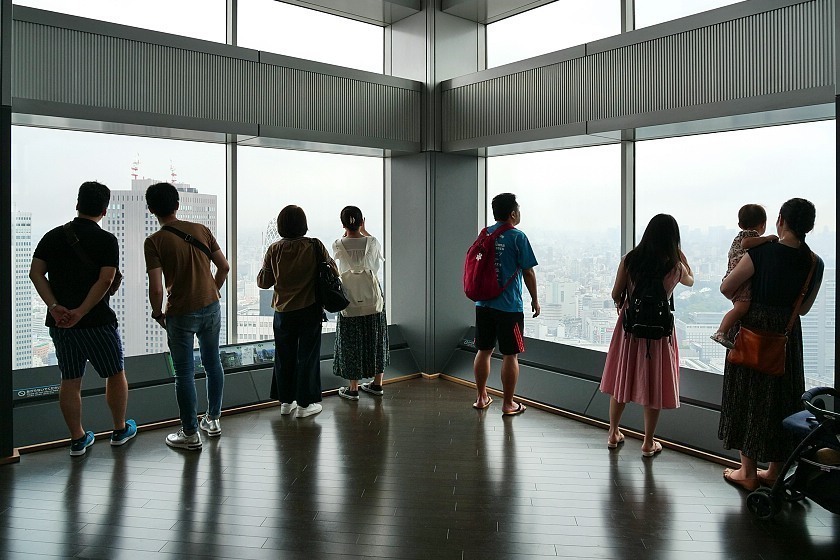 We arrived in Shinjuku Station, the world's busiest train station, and as expected, it was packed with commuters. The nearest women's restroom had a line out the hallway which is not a welcome sight when you're with a child who really needs to use the facilities. There are however many multipurpose restrooms throughout the station that are equipped with changing tables and usually have a much shorter wait time. These are a good option, but if it's not an emergency you'll find even better facilities for infants in the department stores neighboring the station. More on that later. Fortunately for us, my son could wait for his diaper change so we headed directly to our first destination, the Tokyo Metropolitan Government Building.