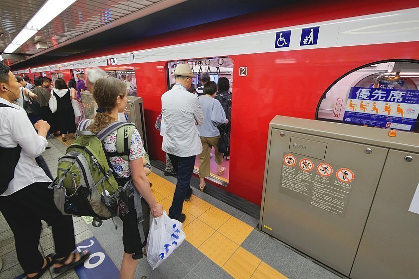 We rode the Marunouchi Subway Line from Shinjuku Station towards the park. On most train lines, this one included, certain cars of the train have priority seating that are reserved for the elderly, sick or injured, pregnant women and parents traveling with infants or toddlers. If you are getting on the train with a stroller, keep an eye out for the stroller symbol which usually accompanies the handicap symbol because in these train cars there's room to stand without having to collapse the stroller. After arriving at Shinjukugyoenmae Station we walked about five minutes to the park entrance and purchased our tickets. Happily for our budget, as of the writing of this article, there is no admission fee for children 0 to 15 years old, which meant that our son entered for free.