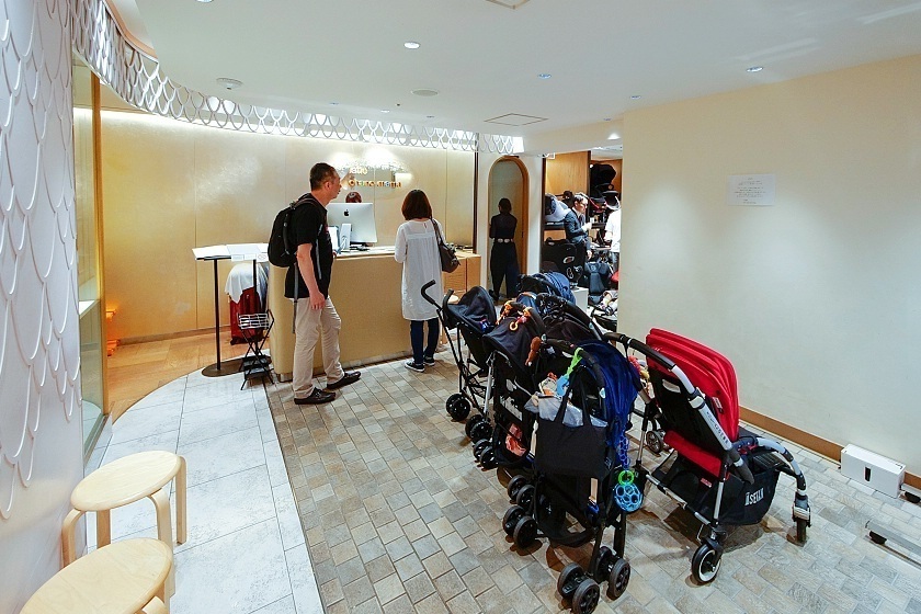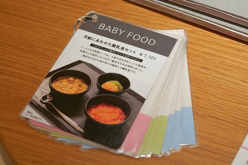 After a full day of activities, our last stop was to check out a baby-friendly cafe called Latte Chano-mama located on the 6th floor of the Isetan Department Store in Shinjuku. We rode the Marunouchi Subway Line just two stops in the direction of Shinjuku Station to get there. The 6th floor of Isetan sells high-end baby and children's goods, and the cafe is slightly on the pricey side as well. I wanted to give it a try though because of the unique baby-centric features. There are two types of seating: tables with booths and chairs that can accommodate 6 month olds and up, or special raised mat seating where babies can be laid down next to you as you eat. In addition, the food is prepared with a focus on nutrition and there's even a menu with organic baby food besides the more standard children's menu. Although there is a nursing station on the 6th floor, mothers are also welcome to breastfeed in the cafe if they feel comfortable to do so.