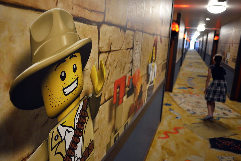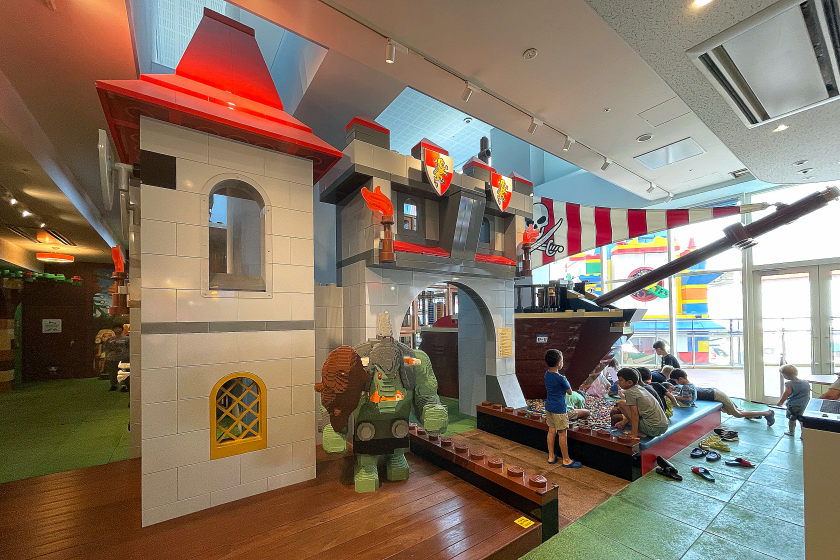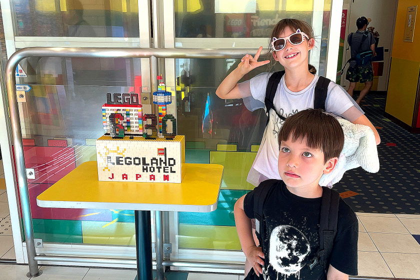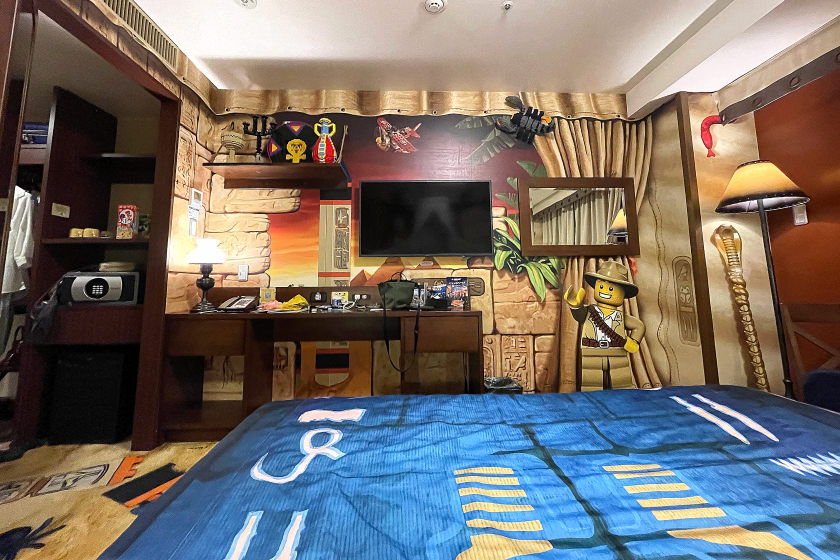 The Legoland Japan Resort hotel is a highly themed experience. There are five different themes to choose from when booking a room, and several options for room size and price within the theme. On our last visit a year ago, we chose a Pirate-themed room. This time, it was Adventure, which has a strong Ancient Egypt vibe. We checked in and checked out our cool room, which gives a small free Lego pack to each child through solving a scavenger hunt-type riddle in the room that leads to a treasure box. Each room also features a bunk bed in a separate area for the kids with duplo blocks to play with and a small TV that always shows one of the Lego movies. It is always very much appreciated when a hotel gives a lot of thought to its younger guests!