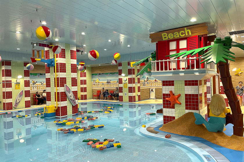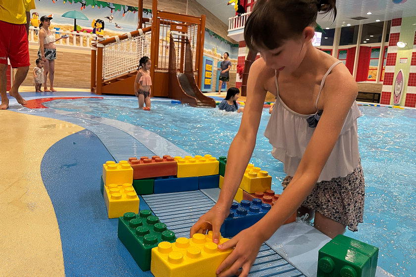 We had chosen an add-on package for each child that evening to attend a creative workshop to make a unique Lego build, and in addition to that, signed up for the free Water Play Area through a reservation made that morning. We also had to fit in dinner, which isn't included in the price of the hotel, although breakfast is. So there was a lot going on in the evening!