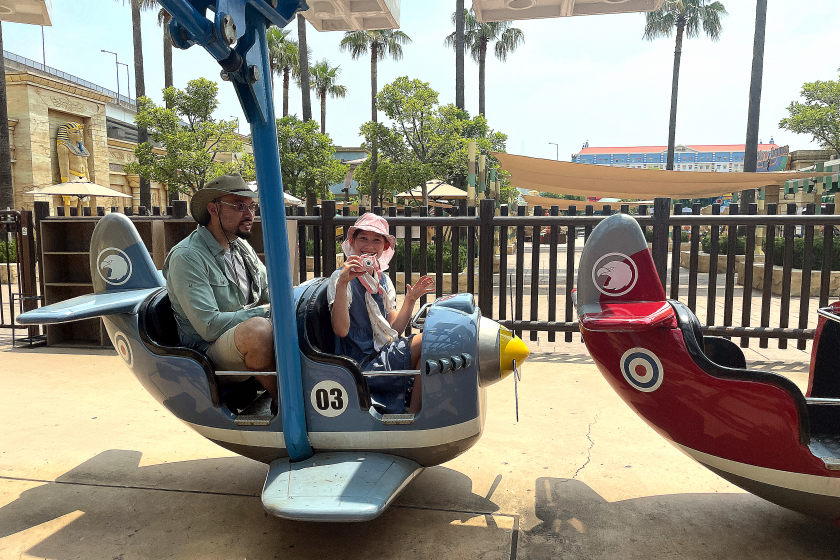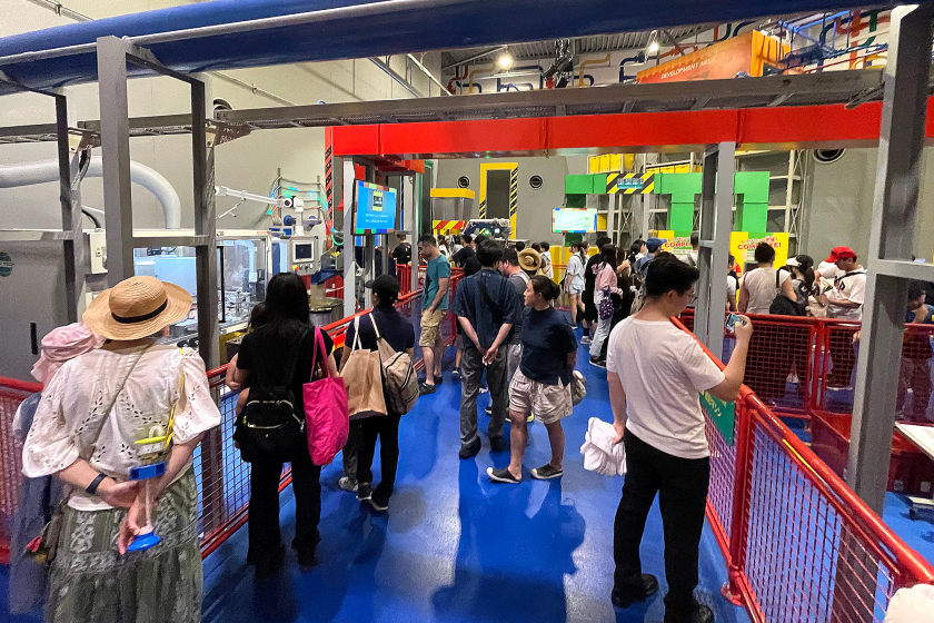 The heat was getting to my husband a bit, so he retreated into one of the air-conditioned restaurants for a break while we rode the dragon over and over. We also managed to catch one of the shows, which was also in an air-conditioned theater, and at one point went on the brick factory tour, also inside. Being able to stop into places to cool off, plus the smoothies, really helped combat the heat.
