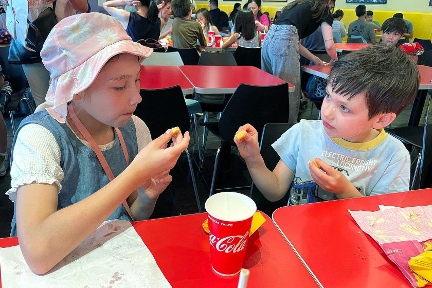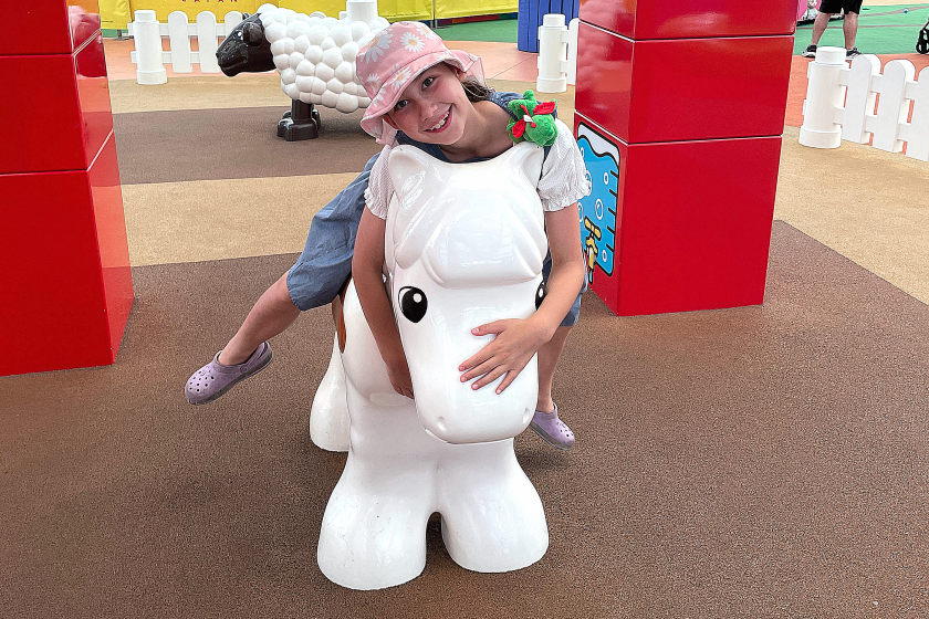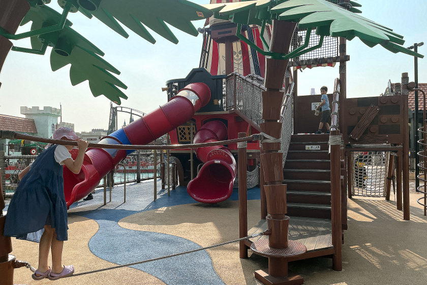 Lunchtime was at a hamburger restaurant in the middle of the park, then directly after lunch it was our reserved splash pad time. There is a very small changing room next to the pad entrance, but it's recommended to go to the much larger one a bit further away. The water was so refreshing in the heat! We had skipped doing it the previous year, but this year it was a hit and I was glad we'd taken the time to do it. You get about an hour to play. During the summer there is also a water show and a maze, but we were a bit too early in the season for that this time.