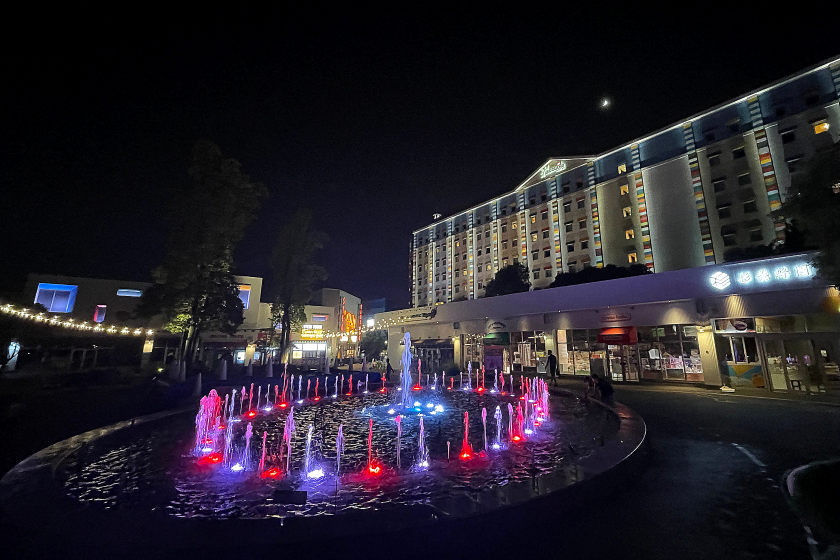 We were too tired to bother with going and finding an open restaurant in the area, so opted again for dinner at the hotel. For those with more energy at the end of the day, there are several restaurants to choose from so you certainly aren't stuck with only eating at the hotel. With dinner and some resting, we did end up taking another walk in the evening around the area, coming back to a pretty sunset and a colorful fountain, which ended the day nicely.