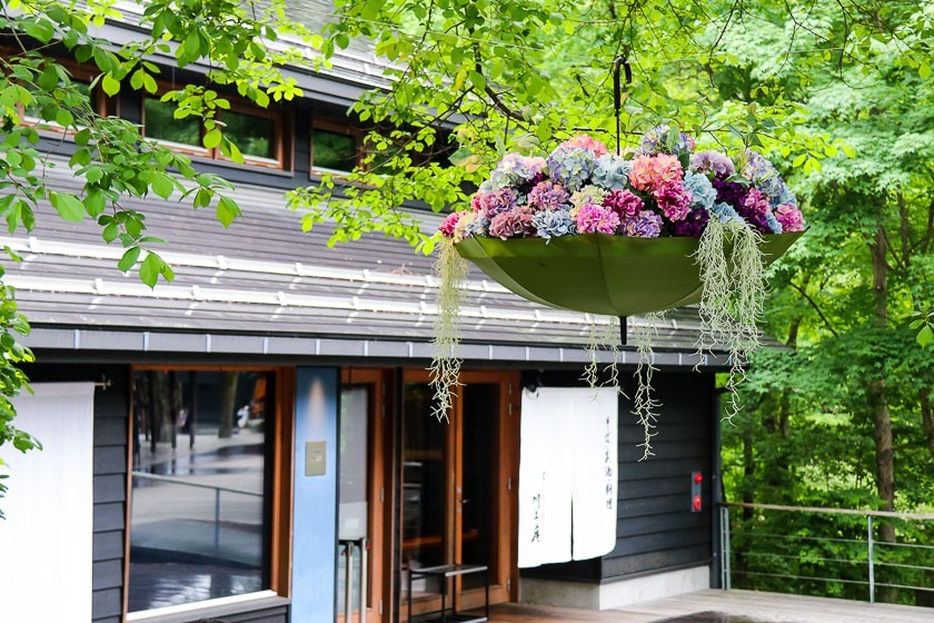 With the cycling leg of the trip done, I went to Harunire Terrace in Naka Karuizawa by bus. Developed by the Hoshino Resort company, the stylish terrace area contains restaurants and craft shops, and a wedding venue nearby. It is also in the vicinity of Hoshinoya Karuizawa, an upscale Japanese ryokan nestled in the nearby forest.