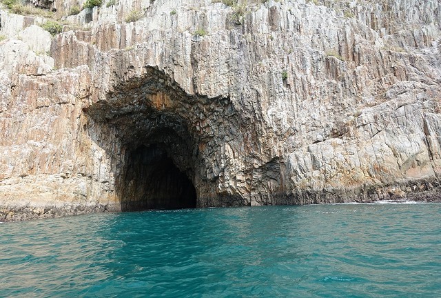 There are two islands in Kadogawa-the biggest, Otojima, is located right in Kadogawa bay and the smaller Birojima is located behind it, about 6 kilometers from shore. After chartering a boat from Iorigawa port we set off on a tour of the bay. Easily visible form shore, Otojima is a familiar presence in town and is essentially a large park where you can picnic and play in the summer. From the boat we were able to see the largest of the seven sea caves that dot the coast?according to legend it was once used by pirates!